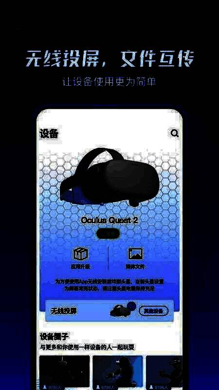 87VRapp不仅是一个内容平台,更是一个功能强大的VR助手。用户可以通过手机轻松绑定VR设备,实现无线内容推送、文件传输等操作。同时,应用还支持将VR设备中的截图和视频分享至社区,让更多人看到你的精彩瞬间。