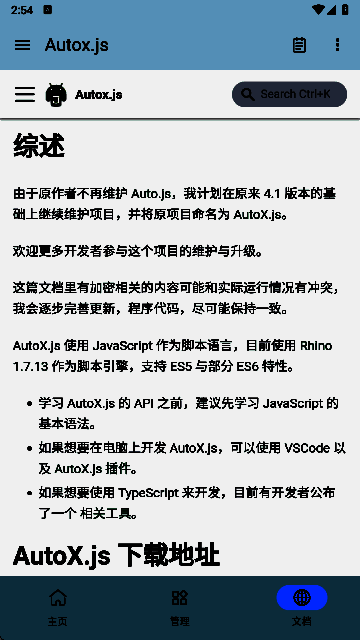 Autox.js是一款专为安卓手机打造的自动化脚本工具,无需Root权限即可实现高效便捷的自动化操作。作为auto.js的官方客户端升级版本,Autox.jsv7在功能与稳定性上进行了全面优化。它不仅支持JavaScript语言开发,还具备跨平台运行能力,适用于各类自动化任务场景,如UI测试、日常流程优化等。