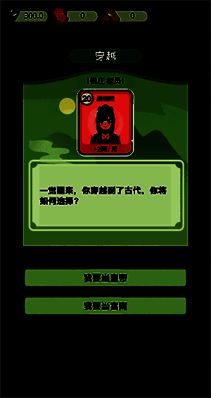 游戏采用双线培养机制,玩家需同步提升角色属性(智慧/力量/魅力)与资源掌控能力(财富/权力/声誉)。丰富的随机事件系统为策略制定带来更多变数,如神秘商人、天降宝藏等奇遇。