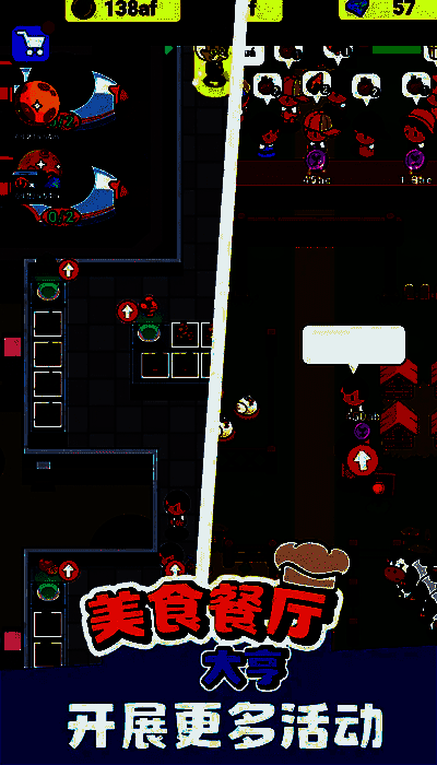 玩家需要招募员工、升级厨房设备、研发新菜品,并根据顾客反馈不断优化服务流程。每一道新菜品的推出、每一次餐厅扩张,都会带来满满的成就感。此外,游戏还设有丰富的主题活动和挑战任务,解锁限定装饰和稀有食材,助你打造个性十足的专属餐厅空间。