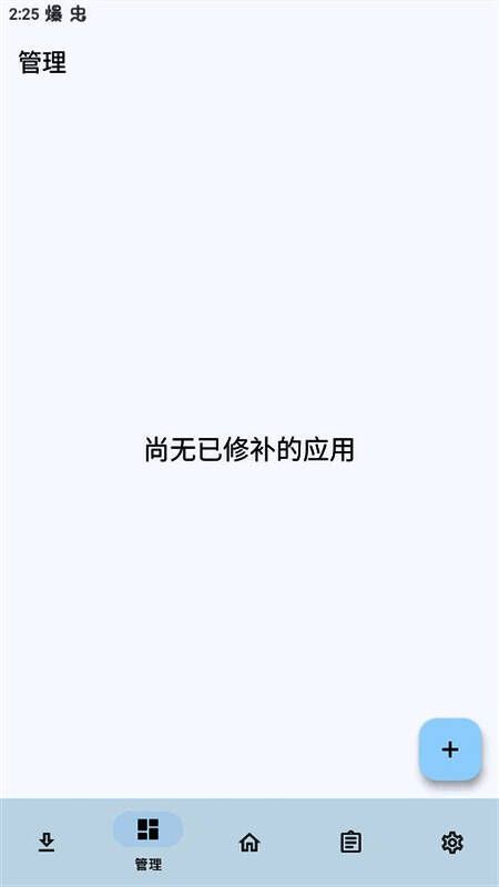1. 打开LSPatch后进入【管理】页面,点击右下角“+”号开始添加修补任务。