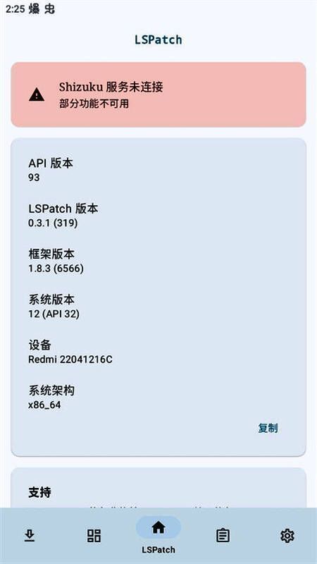 1. 下载并安装LSPatch应用,打开后进入主界面。
