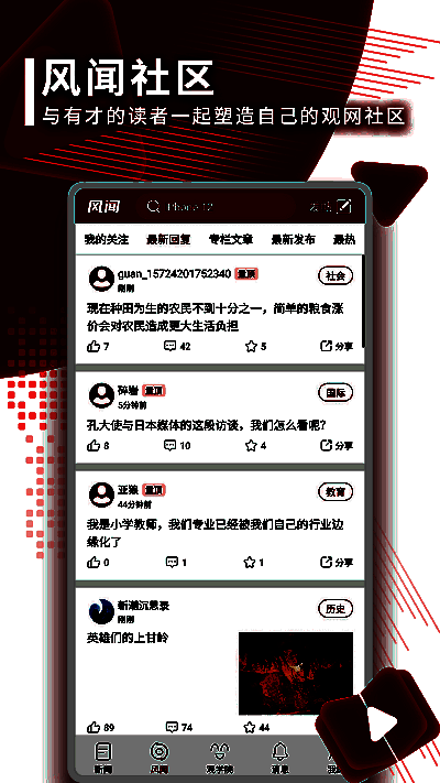 观察者网的“风闻社区”是其一大特色,用户不仅可以发帖讨论、评论留言,还能私信作者进行直接交流,营造出一个“共商天下事”的深度互动氛围。改版后的“观学院”则进一步整合线上课程、讲座与听书资源,形成一站式知识学习平台,丰富用户的知识获取渠道。
