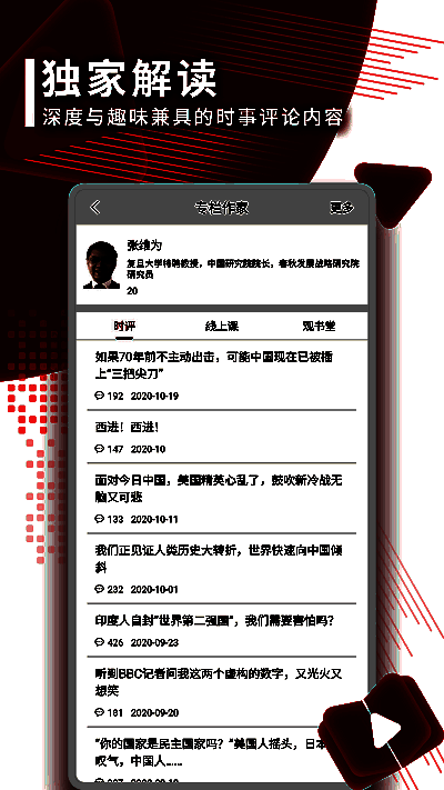 观察者网凭借与上海春秋研究院的合作关系,汇聚多位知名专家如张维为等撰写独家专栏,从中国立场出发解读国际事务,具有极高的专业性和权威性。平台还设有“一周微博观察”“提问张维为”等原创栏目,深入剖析舆情热点,激发思辨火花。同时,它整合全球主流外媒报道,呈现中西方视角的交融与冲突,突出华人立场。