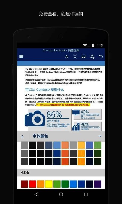 专为安卓平台优化,《Word文档2025最新版》在触控操作上进行了深度适配,界面布局清晰,响应流畅无卡顿。用户可以轻松进行文件创建、编辑、查看等操作,且所有功能键设计合理,操作逻辑符合移动端用户的使用习惯。