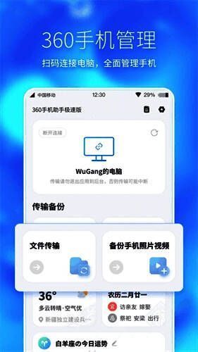 360手机助手极速版作为一款基于360平台打造的轻量化手机管理工具,凭借其简洁的操作界面和丰富的实用功能,迅速在安卓用户中积累了良好的口碑。无论是文件管理、应用下载还是系统优化,它都能提供一站式解决方案,帮助用户轻松掌控手机设备。