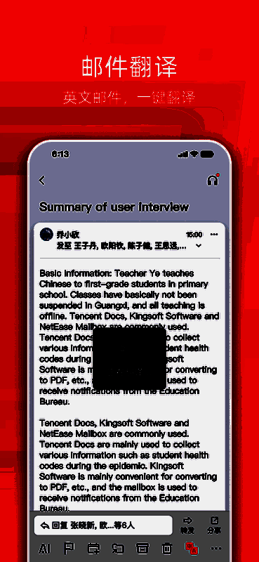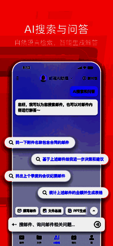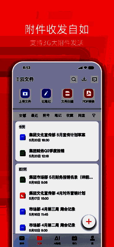 特色功能还包括手势控制操作、平板横屏适配、邮件通知即时推送等,同时支持将附件零流量分享至微信、QQ及易信平台,便于收件人快速查阅。