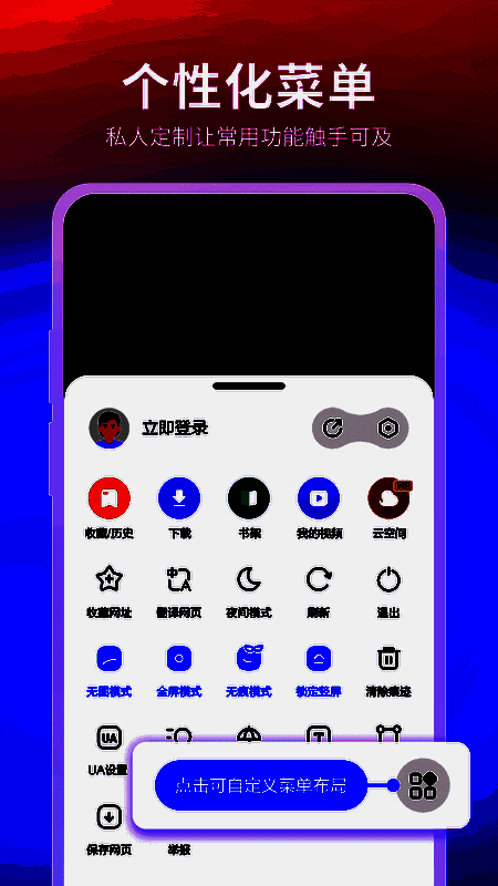 浏览器支持高度自由定制,包括主页布局、搜索引擎、操作栏设置、UA标识修改等,满足不同用户的操作偏好。同时开放广告过滤、翻译、截图等多种实用插件,进一步增强功能灵活性。