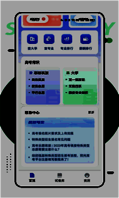 同时,我们还提供了详尽的专业查询功能,让你对各个专业有更深入的了解。志愿填报指导:根据用户的成绩、兴趣和性格特点,提供相应的志愿填报方案。高校信息查询:提供全国各类高校的详细信息,包括专业设置、招生计划等。录取分数线查询:提供历年各个高校各专业录取分数线,并做出分析。志愿填报策略:提供志愿填报的技巧和策略,帮助用户合理安排填报顺序。高考政策解读:及时发布高考政策变化和解读,帮助用户及时了解最新的政策。