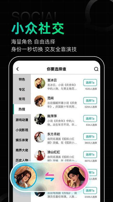 平台采用先进的角色扮演系统,允许用户一人扮演多个角色,或多人同时扮演同一角色,打破传统社交界限。每位用户都需经过平台验证,确保交友环境的真实性与安全性。通过深入角色扮演,用户不仅能提升自己的沟通技巧,还能在互动中感受到不同人格魅力的碰撞。