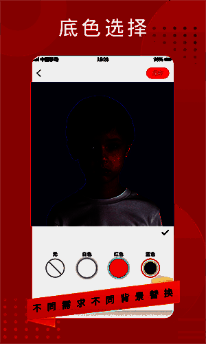 除了基础尺寸设定外,该软件还具备强大的照片编辑能力。用户可以自由更换背景色,一键切换蓝、白、红、灰等多种颜色,以适配不同证件要求。同时,系统会自动识别头发边缘并进行精细裁剪,确保照片效果自然美观。