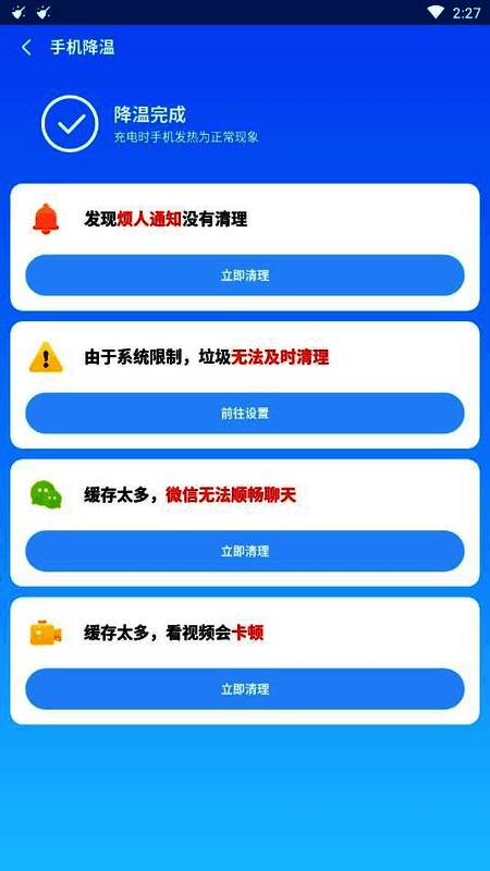 当手机长时间高负载运行时,软件可自动启动降温策略,通过限制CPU频率、关闭发热源等方式,有效控制机身温度,避免因过热导致的系统卡顿甚至死机现象,保障设备稳定运行。