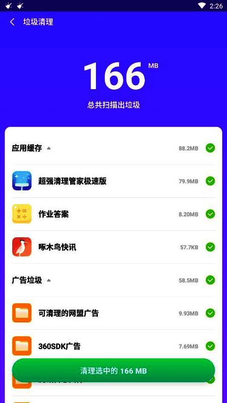 该软件内置多维度的扫描机制,可精准识别并清除缓存文件、临时数据以及无用安装包,帮助用户快速腾出宝贵的手机存储空间。同时支持深度扫描功能,能够追踪隐藏在系统深处的冗余文件,确保清理彻底不留死角。