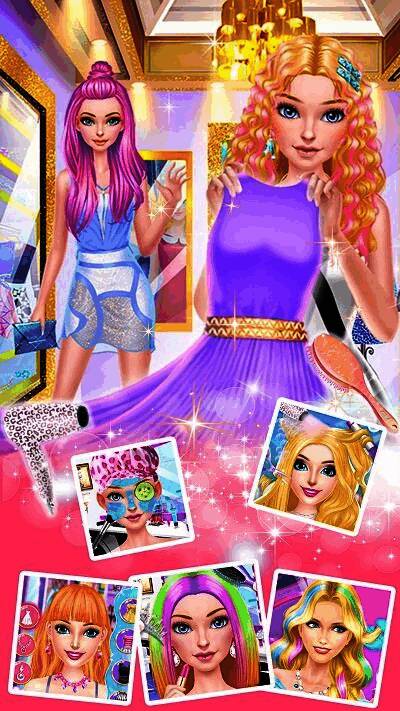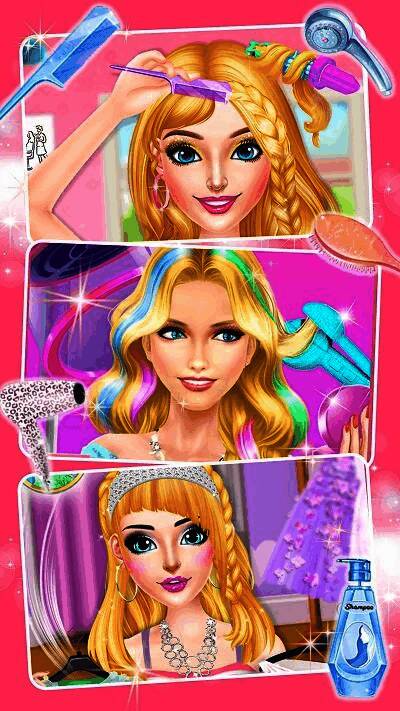 在游戏中,玩家需要完成一系列美发任务,包括接待来自不同王国的公主顾客,并按照她们的需求进行洗发、剪发、染发以及最终的造型设计。每一步都模拟了真实的美发流程,让玩家仿佛置身于一个充满魔法与魅力的美发世界。