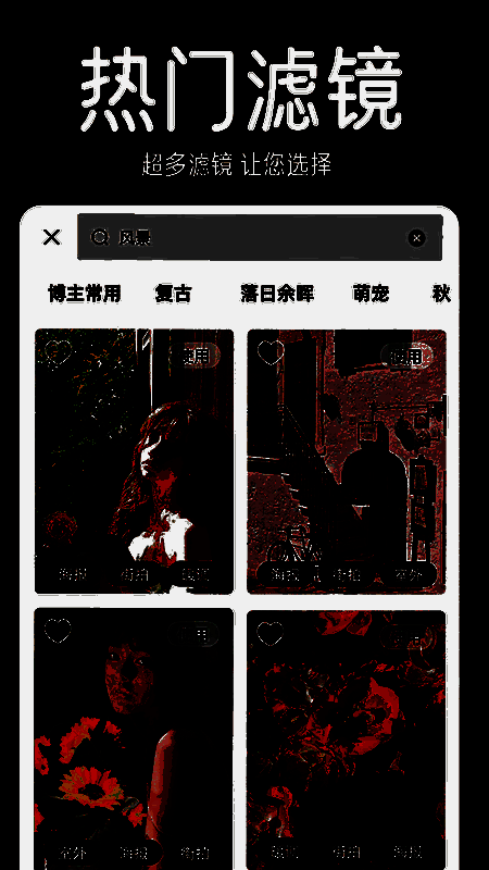 dazz相机内置多达100多个高级滤镜,涵盖流行的电影效果、荧光灯风格以及黑白静音等多种视觉风格。用户还可根据实际拍摄环境,手动切换滤镜或使用智能拍摄功能自动匹配最佳滤镜,提升照片表现力。
