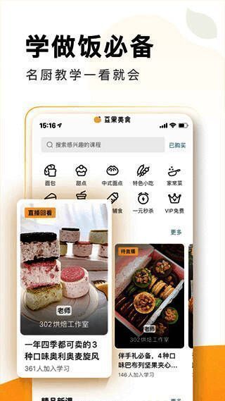 软件中的教学视频结构清晰、操作步骤简单明了,即使是初学者也能轻松上手。用户可以根据个人喜好挑选感兴趣的食谱进行学习,并将喜欢的内容加入收藏夹,便于日后查找与复习。
