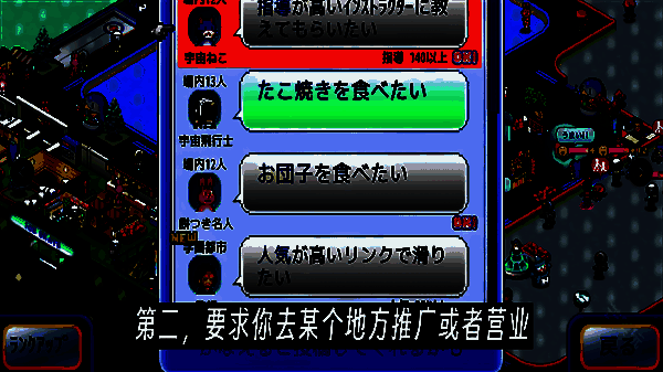 玩家在游戏中会遇到各种顾客心愿任务,例如使用特定道具对某建筑物进行操作、前往指定地点推广营业、在一定人气条件下使用某建筑、或满足顾客对某种食物的需求等。