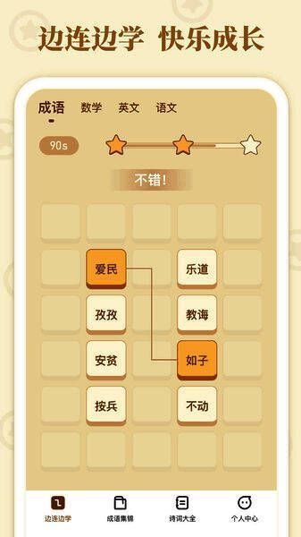 游戏采用多种模式激发玩家的参与热情。经典闯关模式让玩家通过连线拼接出正确的成语,逐步解锁更高难度的关卡;限时挑战则考验反应速度与词汇储备,在紧迫时间中完成尽可能多的成语匹配;每日任务提供固定目标与奖励激励,增强游戏持续性;智慧答题则以谜题形式引导玩家深入理解成语含义与应用场景。