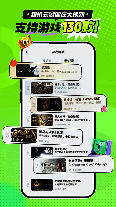 随着云游戏技术的不断进步,越来越多玩家希望在移动设备上也能体验到PC端的大型游戏。而“超机云游戏 无限制免费版”正是这样一款应运而生的创新产品。它通过强大的云端服务器资源,让玩家无需下载即可直接运行各类高质量PC游戏,极大提升了游戏的便捷性与可玩性。该平台不仅提供丰富的游戏内容,还以“每天18小时免费游玩时间”的贴心设计赢得了广大手游爱好者的青睐。