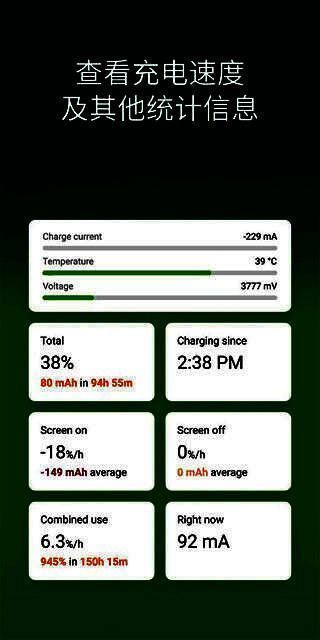AccuBattery的优势不仅体现在功能上,更在于其实用性和易用性。它支持中文显示,界面简洁明了,即使是初次使用的用户也能快速上手。以下是其核心优势: