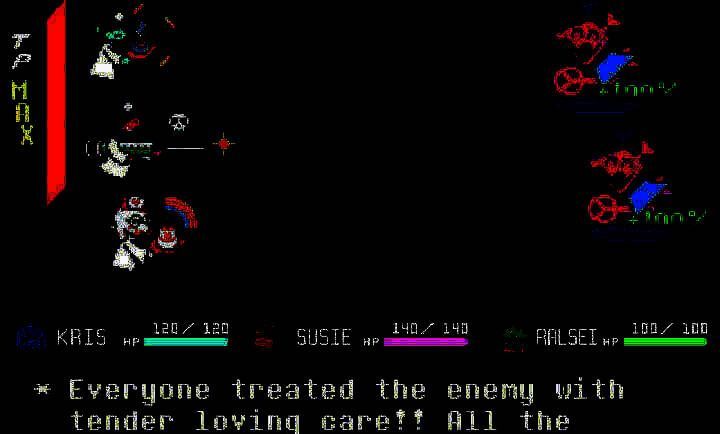 游戏采用多线剧情叙事方式,通过对话选择与保存文件差异触发隐藏事件,角色命运随玩家决策动态演变,解锁多个结局。战斗系统则结合传统回合制与子弹地狱躲避机制,考验技能搭配与TP值积累,打造紧张刺激的战略对决。
