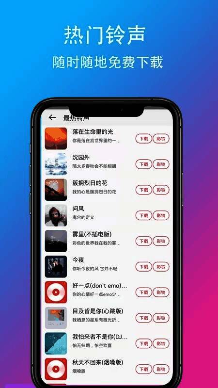 在如今个性化的移动设备使用趋势下,手机铃声早已不再是单调的默认音效。《乐酷铃声 免费版》应运而生,作为一款专注于提供高质量铃声服务的软件,它不仅拥有丰富多样的铃声资源库,还支持用户自由编辑、上传与个性化定制,满足不同用户的多样化需求。