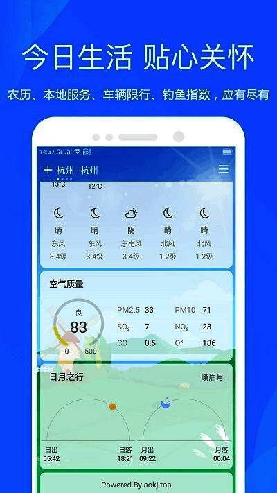 软件内置空气质量监测模块,实时显示AQI数值并以颜色区分空气质量等级,让用户清楚了解空气状况,做好防护措施,保护身体健康。