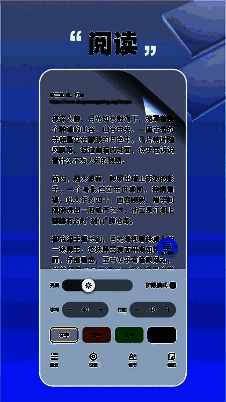 该软件致力于为用户打造一个纯粹、沉浸式的阅读环境。支持背景主题自由切换、字体大小调整以及翻页模式自定义,让用户从视觉到操作都能获得最舒适的体验。同时,开启纯净模式后可彻底屏蔽广告干扰,真正实现零打扰阅读。