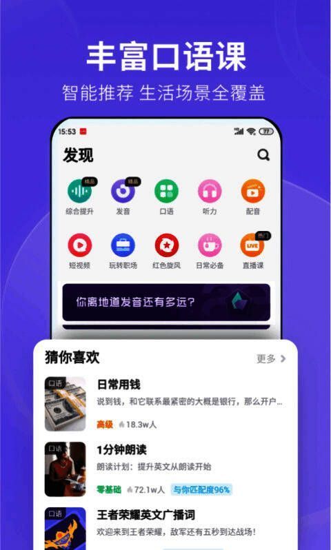 作为一款广受欢迎的在线英语学习平台,《英语流利说》官网版持续为用户提供系统化、个性化的英语课程。软件不仅涵盖了从基础词汇到高级口语的多阶段内容,还通过AI智能评估系统与互动教学模式,帮助用户在轻松的学习氛围中逐步提升语言能力。无论你是学生、职场人士还是英语爱好者,都能在这里找到适合自己的学习路径。