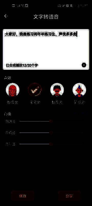 该软件支持多种音效参数调节,包括颤音、频率、混响、音调等,用户可根据需求自由组合,打造专属个性音色。不仅可以将录制好的声音保存为铃声、闹钟或短信提示音,还能直接分享给微信、QQ好友,甚至用于视频创作,丰富你的内容表达方式。
