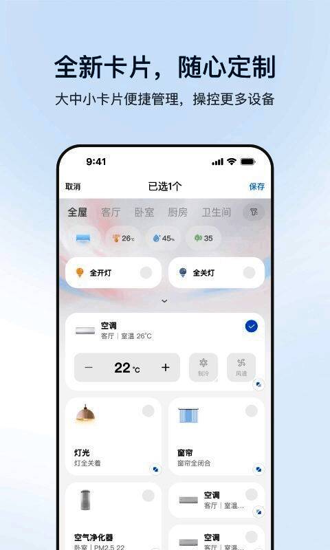 4.海尔空调遥控手机版营造了一种情感氛围,增强了家庭成员之间的情感交流。调整灯光和音乐,营造温馨氛围。