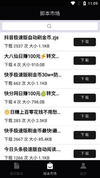 3、脚本市场 有大量脚本,优质脚本丰富。