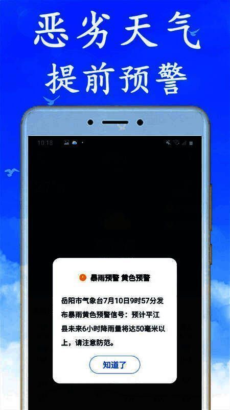 4.天气预警通知:及时提醒异常天气,提供防御指导,帮助您预防天气和气象灾害。