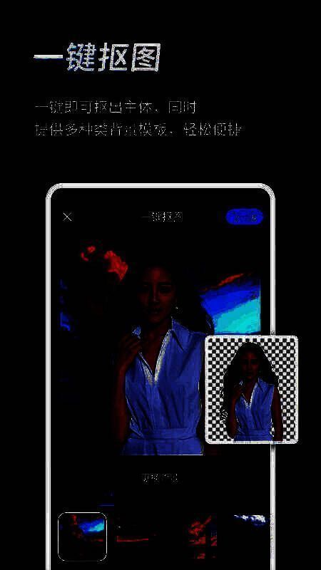 上传肖像图片后,只需点击一下即可挖出主体,并提供各种背景模板,简单方便。