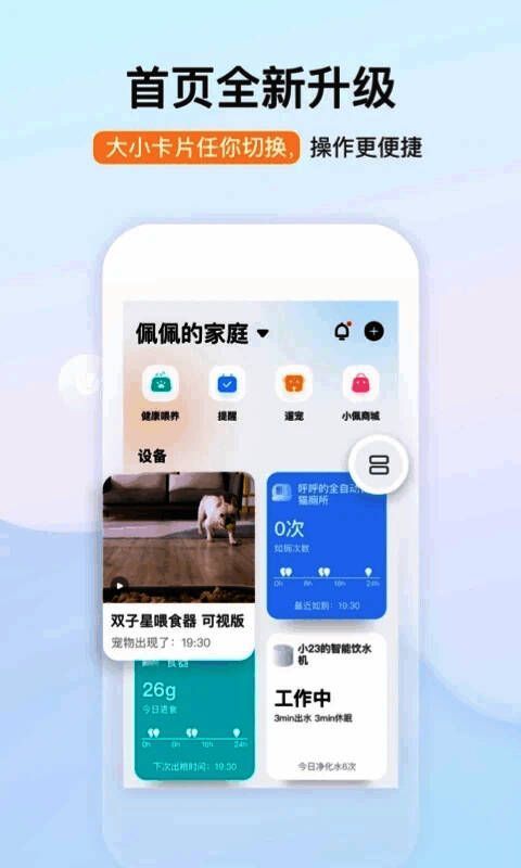 小佩宠物 最新版是一款可以与智能设备连接的软件。用户可以在这里更好地饲养宠物,通过在家连接设备来安排猫粮的喂养和猫的生活健康,这使得用户更方便地照顾宠物。需要它的用户来这里使用这个软件,这是数百万宠物家庭的选择。在这里,您可以通过宠物智能产品了解宠物的日常饮食、睡眠、厕所等数据,还可以与狗、父母和猫交流。选择佩奇产品的大多数用户都是该市的宠物主人。他们的宠物和他们一样时髦。
