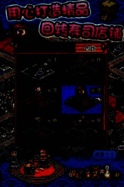 4、海鲜寿司物语的操作还是很简单的,游戏的所有操作都集中在菜单中,上面是各种情报和寿司店的调整,下面就是移动鼠标的虚拟键盘,以及保存和返回的两个快捷键。
