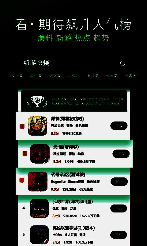 作为一款专注于游戏资讯与社区互动的优质平台,《好游快爆》为玩家提供了一个集“好游推荐+新奇游戏+动漫游戏+抢先内测”于一体的一站式游戏服务应用。无论你是资深玩家还是刚入门的新手,都能在这里找到属于自己的游戏天地,同时还能掌握最新的手游动态、参与真实评价交流,甚至直接与开发者对话反馈建议。