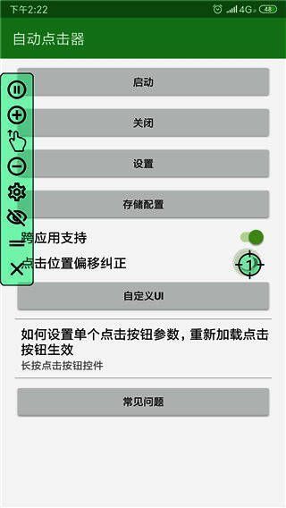 自动点击器通过浮动控制面板开始/结束自动点击。您可以使用控制面板在屏幕上添加单击位置,以实现自动单击。