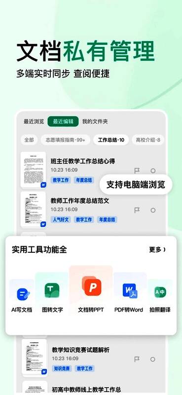 该手机软件提供了丰富的文档资源,同时具备方便的搜索和过滤功能,以及多种文档格式的转换和编辑功能。强大的搜索功能和定制选项使用户能够快速找到所需的文档,并根据需要进行定制。