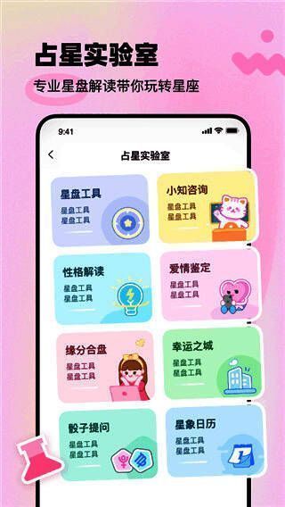 3.通过有趣的测试和星座知识专业文章等工具,陪伴你的成长,丰富你的经验,传达生命的勇气和力量;