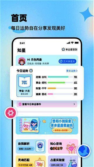 知星官方版提供了一个全面的平台。通过输入详细的出生信息,用户可以在出生当天轻松获得自己的星盘。该应用程序不仅可以帮助用户快速了解日常星座,还可以深入分析自己的星盘,提供对个性、爱情和职业的详细解释。此外,它的组合功能允许用户在星盘中探索与他人的互动和影响,进一步增进对人际关系的理解和和谐。对于那些想探索自己和他人星座的人来说,还可以通过组合功能了解你与他人相处的方式和亲密关系,这样星座对你来说就不再神秘了。此外,我们将从你的性格、爱好等方面准确分析各种数据,每天还可以看到适合每个不同星座的颜色和幸运数字。