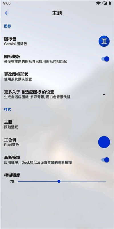 1.要更改主题,您可以选择您最喜欢的图标套件并添加高斯模糊;
