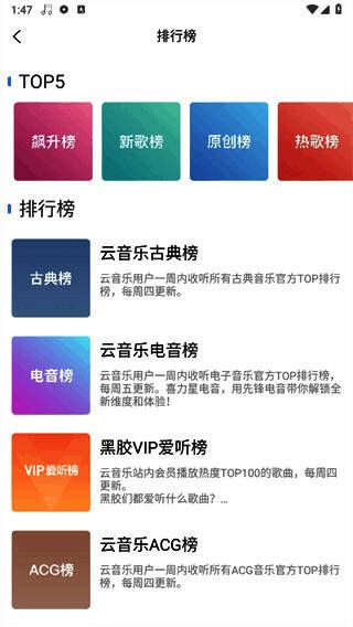 4.仔细规划和分类平台上的所有歌曲。用户可以通过直接点击相关界面收听同一类型的多首歌曲。