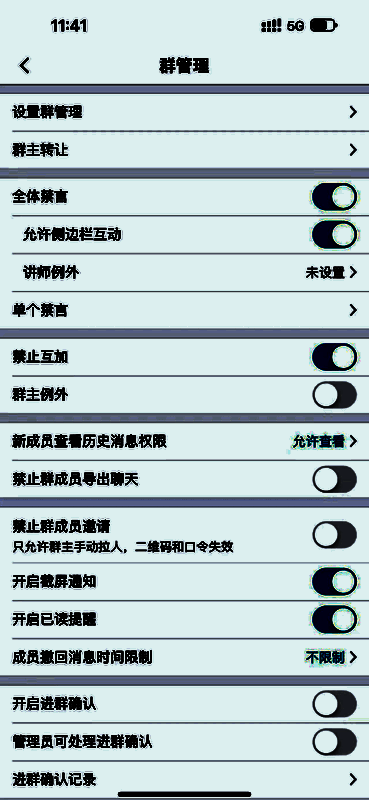 3、可以设置禁止相互添加的模式,也可以用一键转发内容素材,非常方便;