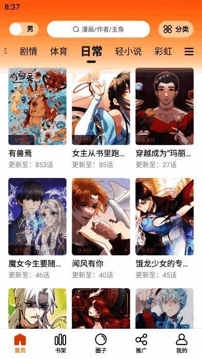 1.不同风格的漫画书籍都可以在这里快速过滤,满足不同年龄段用户的阅读需求;