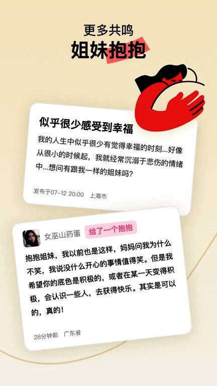Hertown 最新官网入口是专门为女性设计的社区应用程序。它致力于创造一个温暖包容的平台,让女性可以诚实地分享自己的真实经历,提问,表达自己的意见,并与荷花池中的其他姐妹进行深入讨论和帮助。在Hertown 最新官网入口中,每个姐妹都能找到一个被理解、支持和鼓励的空间,鼓励她们敞开心扉,勇敢地表达自己的想法和感受。这个平台不仅是一个交流的地方,也是一个团结互助的社区。鼓励姐妹们分享她们对个人生活、家庭角色和职业挑战的疑虑和经历,以便她们能够相互支持和共鸣。