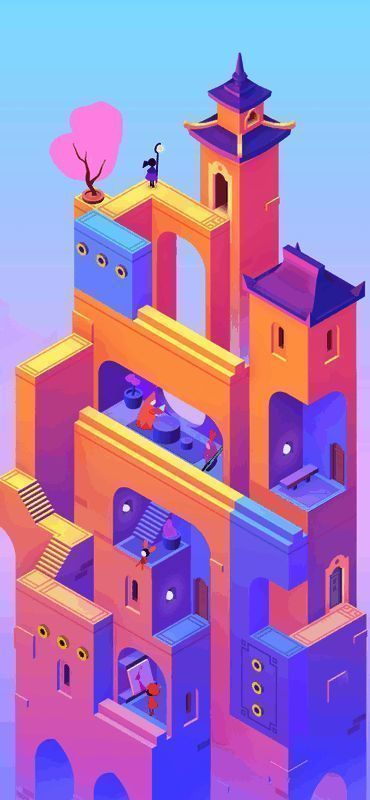 1、经典的游戏内核,纪念碑谷3延续了本系列一贯的极简主义美术风格与地图设计。