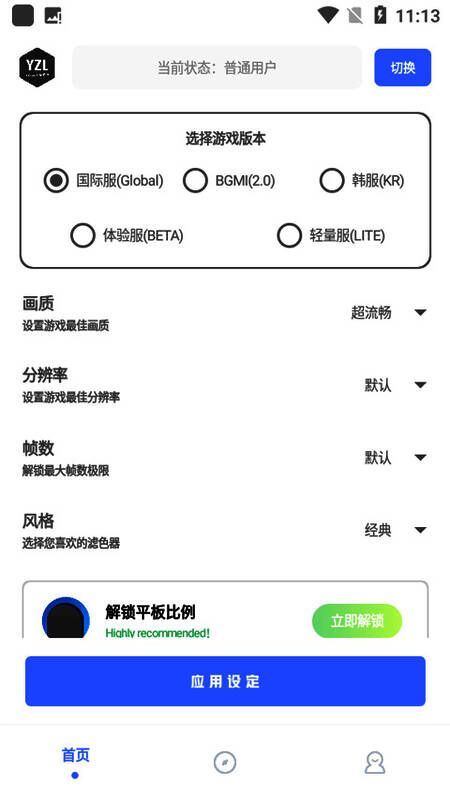 1、下载安装好yzl工具箱,运行软件,可以看到能支持流畅、均衡、高清、HDR高清、超高清等多种画质,还可以设置60FPS、90FPS等,更可以对音质进行设置;