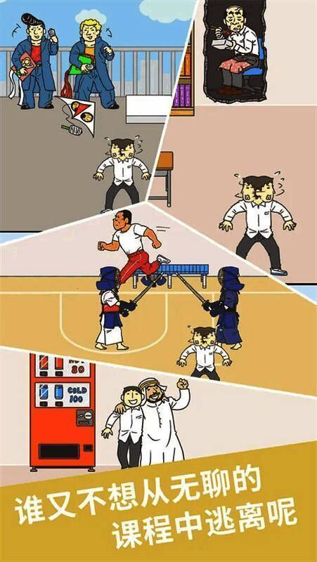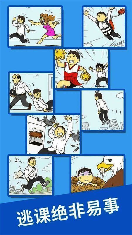 1、玩家需要点击屏幕控制角色的移动,避开老师的视线,才能成功逃课。