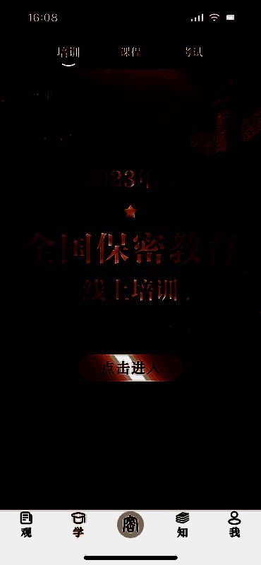 1、打开保密观App,在学堂界面中点击培训。